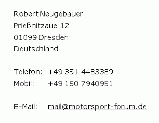 Alle sonstigen Grafiken sind im Besitz von www.MOTORSPORT-FORUM.de. Eine Veröffentlichung auf anderen Homepages ist nur mit ausdrücklicher Zustimmung des Webmasters erlaubt.